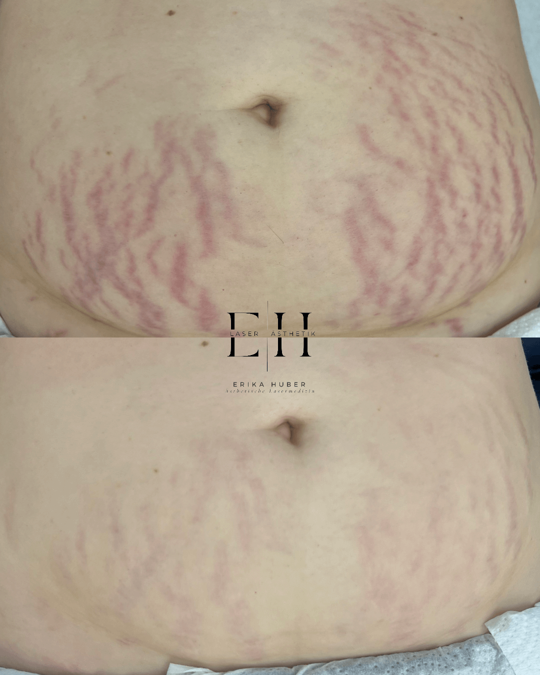 Narben und Dehnungsstreifen werden oft als belastend empfunden, doch Sie müssen sich damit nicht abfinden. Ob rote, frische Striae oder erhabene Narbenstrukturen: Ich nutze gezielte Laserimpulse, um das Gewebe zu restrukturieren. Sehen Sie hier, wie rote Streifen unter meiner Behandlung verblassen und das Hautgewebe wieder flach, weich und unauffälliger wird.